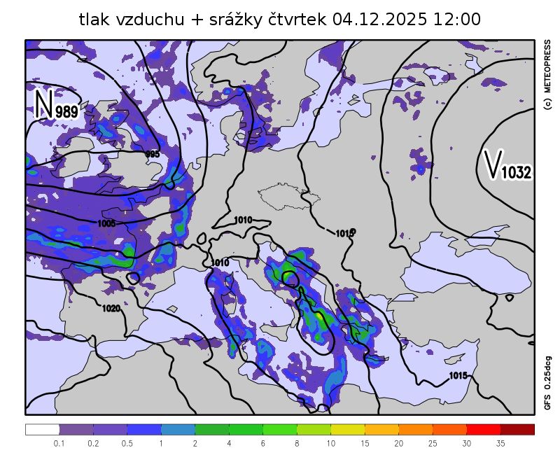 Od západu začne počasí ve střední Evropě ovlivňovat zvlněné frontální rozhraní.