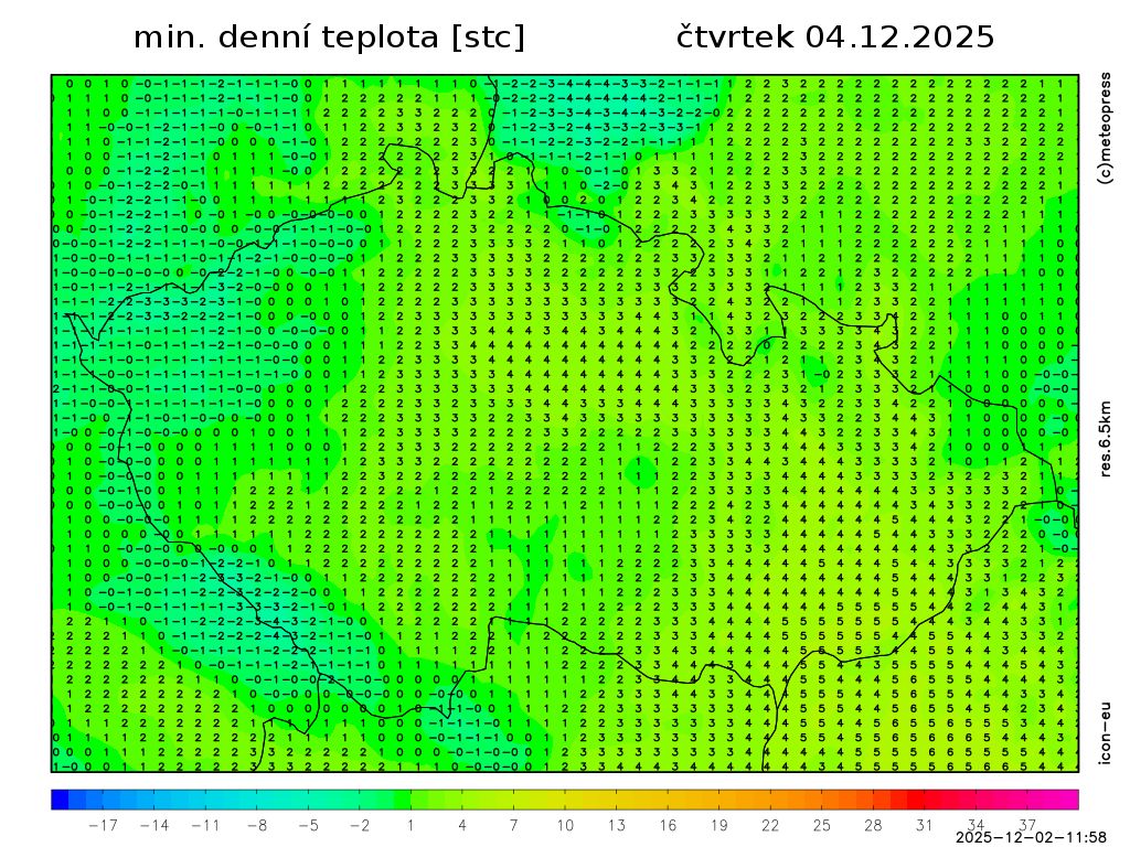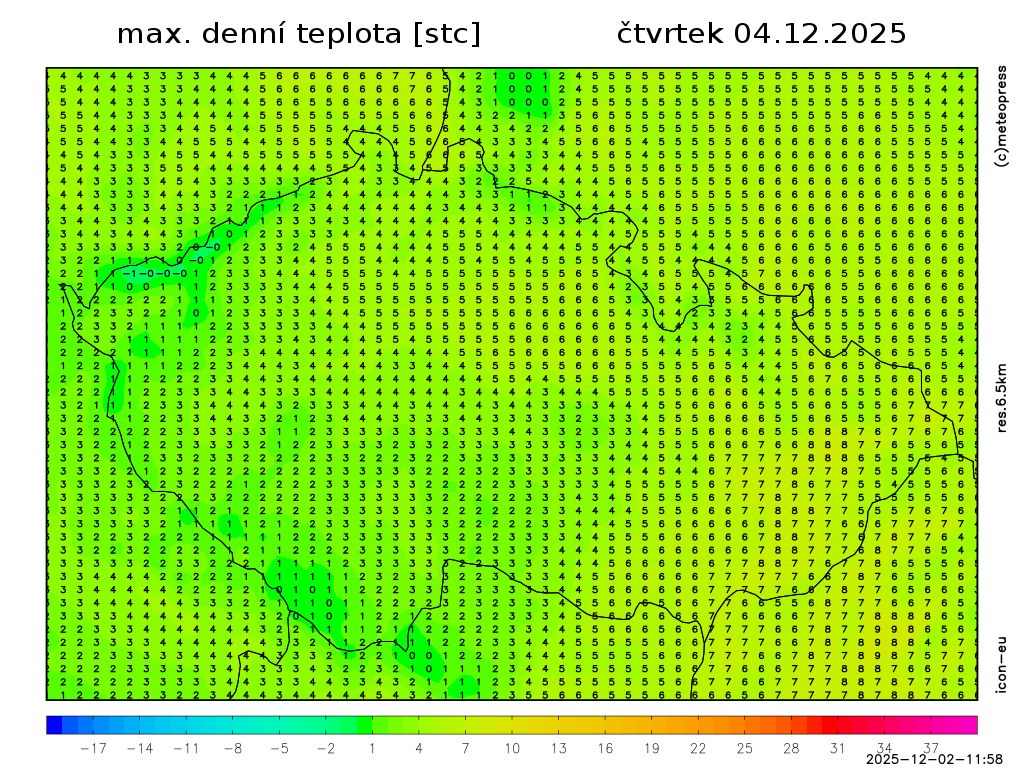 Nejvyšší denní teploty vystoupí na 0 až 5 °C, na východě až na 8 °C.
