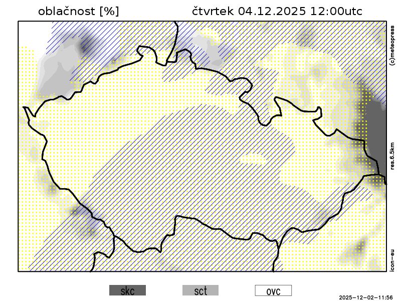Ve čtvrtek bude zataženo nízkou oblačností, mlhy, ojediněle mrholení.